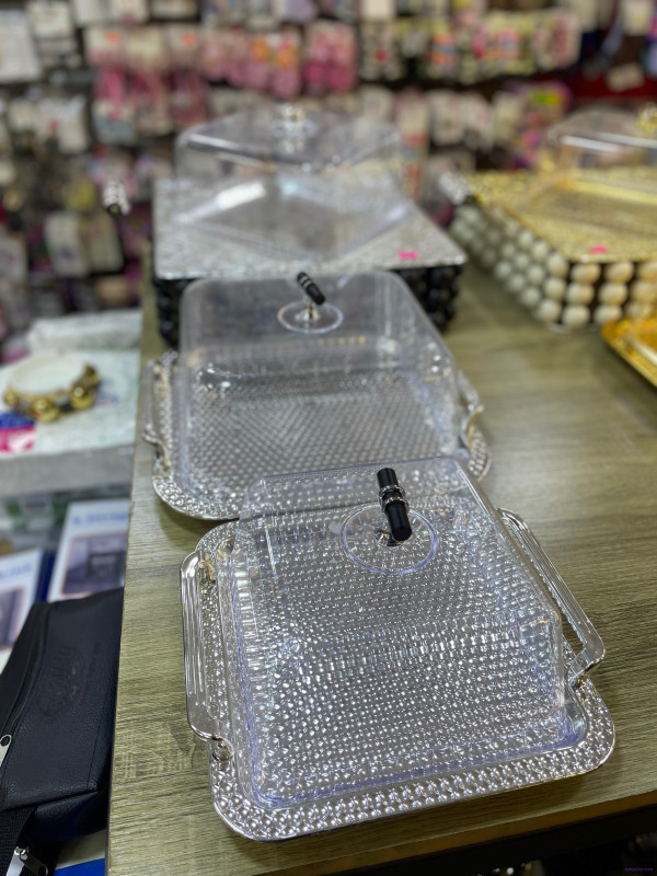 الوصف :علب متعدده الاستخدام بأحجام مختلفه يوضع فيها الحلويات مثل الكعك على طاولة الضيافه