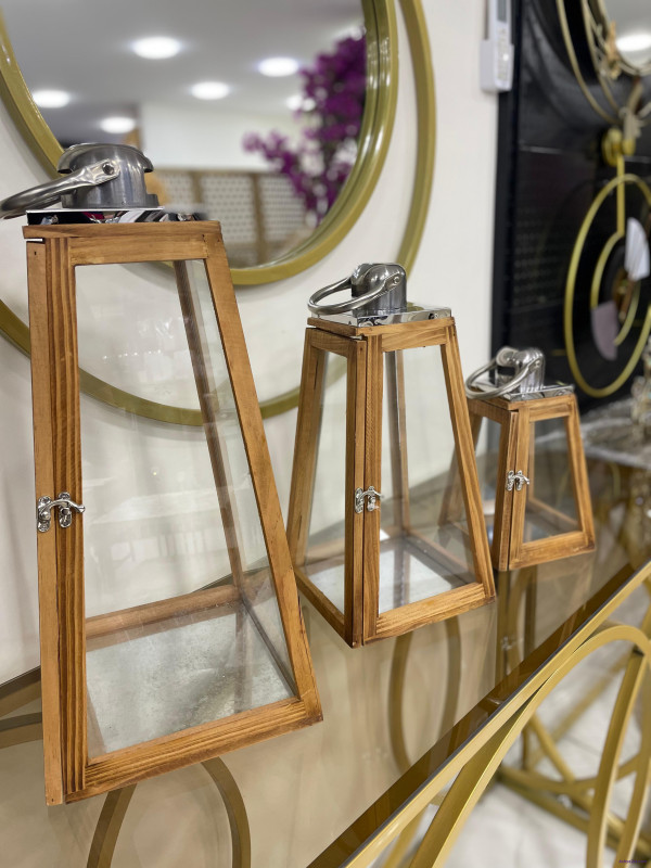 الوصف :فانوس خشبي جميل جدا للديكور كل حجم له سعره الخاص الحجم الصغير٧ ،الحجم الوسط١٢ ،الحجم الكبير١٥