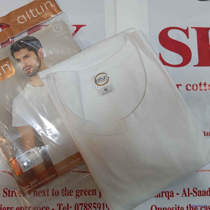 فانيلا نص كم قبة دائرية وسط قطن تركي 100%