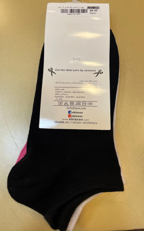 الوصف :جوارب نسائي قطن ساق قصير مقاساته ٣٦-٤٠