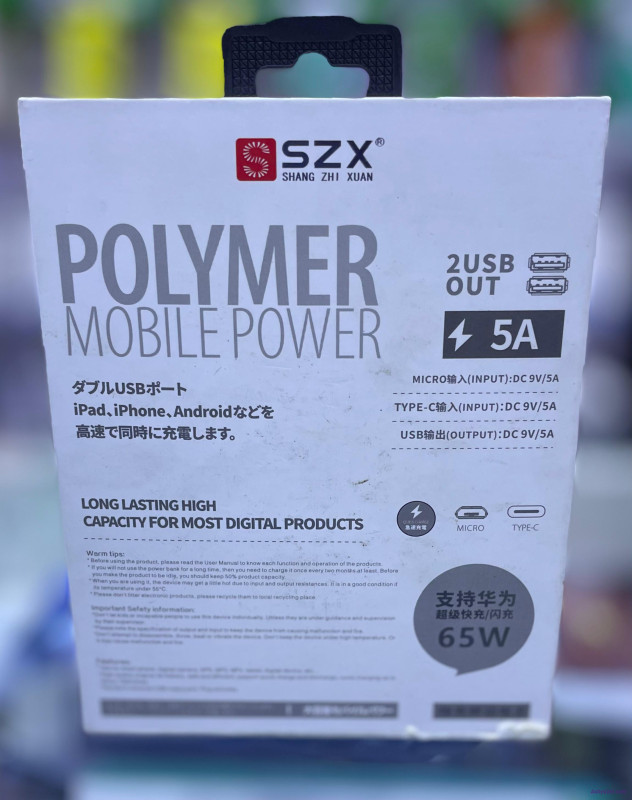 الوصف :باوربانك شحن سريع ٦٥واط مدخلين USB ومدخلTC