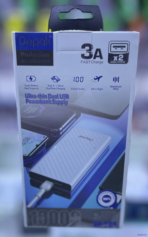 الوصف :باوربانك شحن سريع ١٠٠٠٠ واط يوجد مدخلين USB