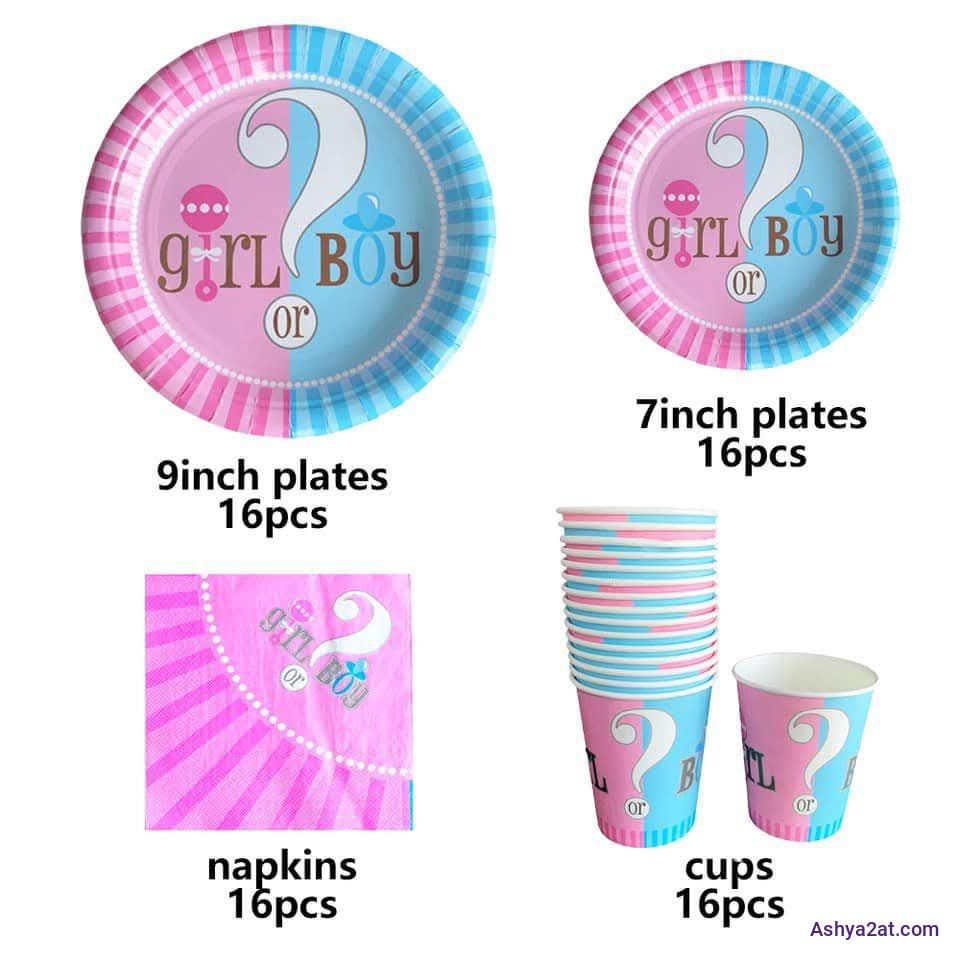 الوصف :زينة تحديد جنس المولود ،صحون عدد ١٠ بـ ١دينار ، كاسات عدد ١٠ بـ ١ دينار ، برادي شراشيب طول ٣متر بـ ١دينار ، شرشف طاولة ٦مقاعد بـ١ دينار